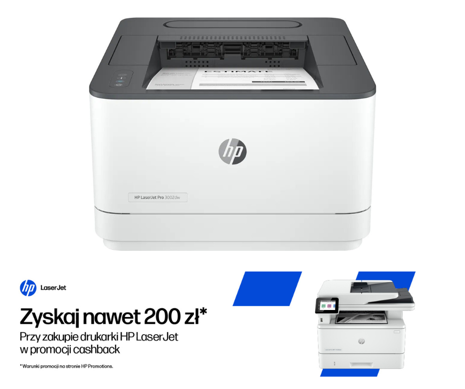 | Akcesoria w zestawie | 3G652F Drukarka HP LaserJet Pro 3002dw Startowy wkład laserowy HP LaserJet z czarnym tonerem (wydajność ok. 1000 stron) Instrukcja instalacji Przewodnik referencyjny Ulotka dotycząca przepisów Przewodnik dot. gwarancji Przewód zasilający |